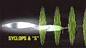 SYCLOPS — одна из лучших колеблющихся блесен в мире, имеющая превосходно отработанную форму. Старинные прототипы, схожие с этой блесной, в наше время практически не сохранились. SYCLOPS унаследовал от них двойной прогиб в горизонтальной проекции, обеспечивающий при проводке максимальное сходство с движениями живой рыбы. Блесна не имеет мягкого профиля, ее форма образована сопряжением плоскостей, в том числе, образующих в хвостовой части «ребро устойчивости», гарантирующее SYCLOPS устойчивую, без «свалов», игру как на спокойной воде, так и при любой скорости течения. Благодаря идеально расположенному центру тяжести и удачному соотношению между весом и площадью приманки, все размеры SYCLOPS сохраняют превосходную игру даже при свободном падении после прекращения проводки. Как известно при ловле лосося и щуки такой приём бывает незаменим. Кроме того, эффект от движения блесны значительно усиливается за счет игры света, отражаемого плоскостями. Стандартный вариант SYCLOPS имеет окраску серебряного, золотого и черного цветов, с красным и черным рефлекторным рисунком. Кроме этого, MEPPS производит блесны, декорированные желтой наклейкой с красным рисунком. SYCLOPS — практически идеальная приманка для всех видов хищных рыб на всех водоемах и при любых условиях ловли. Сложный профиль имеет десять граней отражения света. Его движение, благодаря идеальным колебаниям в различных плоскостях, очень точно имитирует живую рыбу - идеальную жертву хищника. Устойчивость игры гарантирована при любой скорости проводки. Такая характерная особенность облегчает и быстрый охват больших участков стоячих вод (щука, судак, окунь), и обеспечивает удобную ловлю на течении (лосось, кумжа, форель).